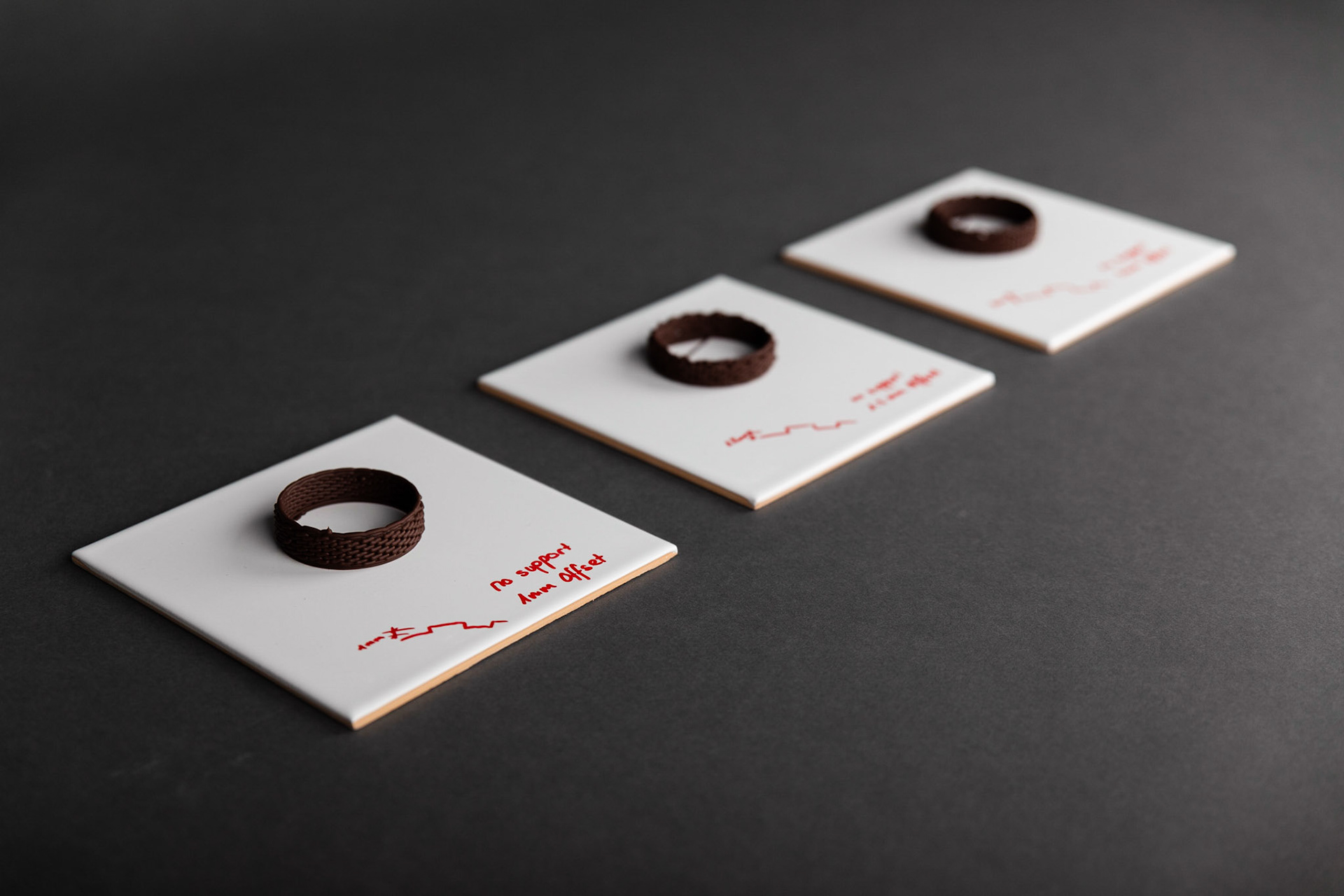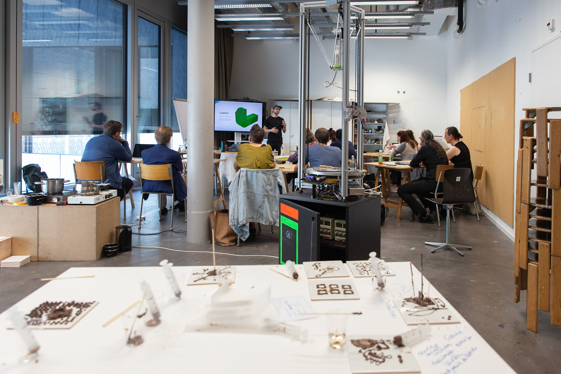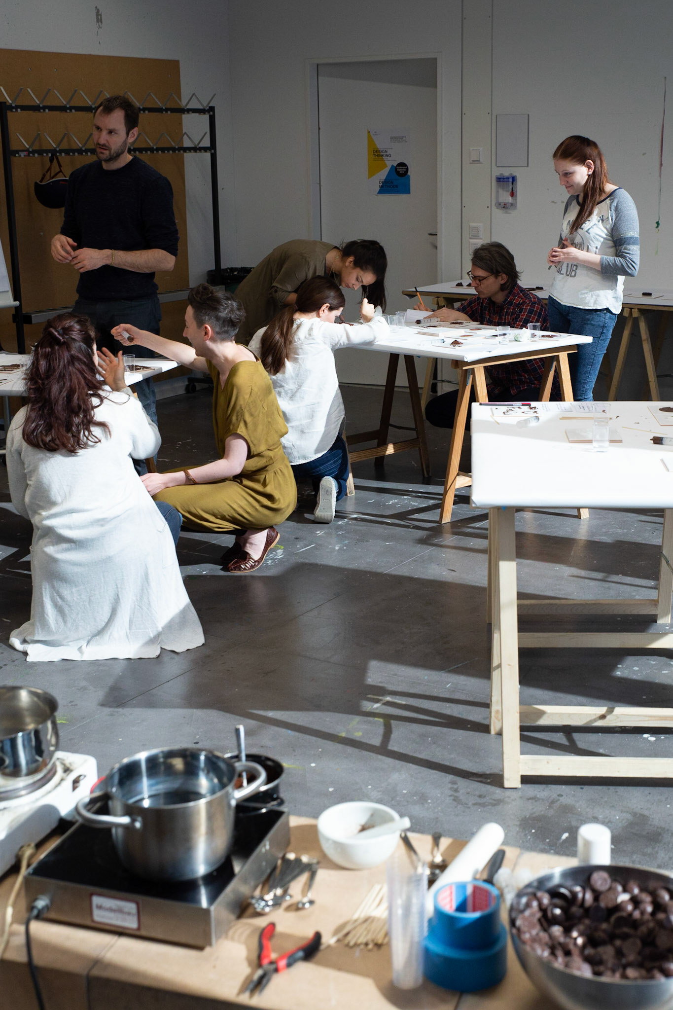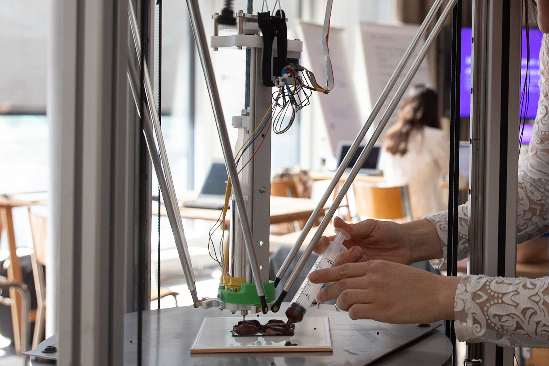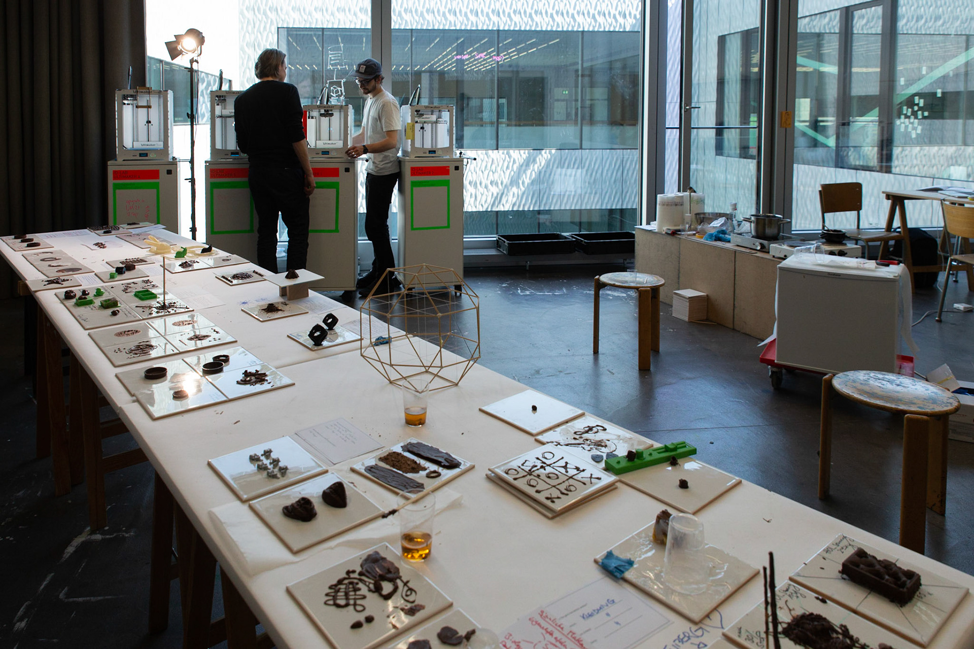 "There is no need to learn 3D-printing, but a lot to learn about how to digitally work with materials." In a workshop on "3D-printing and emotive materials", students created novel material experiences in chocolate using digital fabrication technologies. Analog methods helped establishing a new understanding about a material that seems to be so familiar with everyone. Simultaneously, the experimental and playful approach raised an awareness for the irks and quirks of 3D-printing even before getting hands-on.